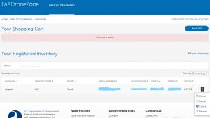 5 – You will then see a section that says “Your Registered Inventory”.  (see screenshot sample).  On the very right side of the drone you plan to sell, trade or give away, you will see an icon with 3 dots lined up vertically.  Click that and it will reveal a menu with options of “Clone, Details, Cancel or Resend”.  Click “Cancel” if you are ready.